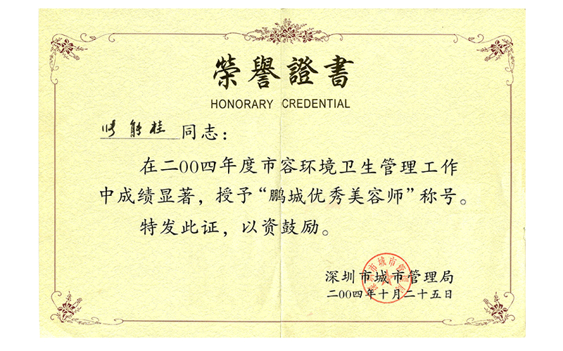 2004年度鹏城优秀美容师(张能桂)