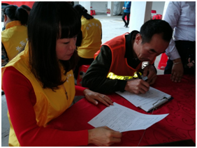 (爱心献血志愿者们正在填表登记)