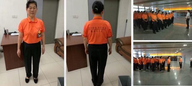 新工装采用橙色上衣加黑色西裤的搭配,整个色调既鲜艳又和谐。工衣的背后还印上了“清洁枢纽,为您服务”的这样,配上公司logo和名称,深刻传达了企业的工作性质和服务宗旨。新的工衣采用纯棉布料,让我们的员工在炎热的夏日感觉更加舒适。得体的剪裁,在休闲中带有规范的感觉,不仅让员工穿着心里美,也整体提升了项目员工的精气神。